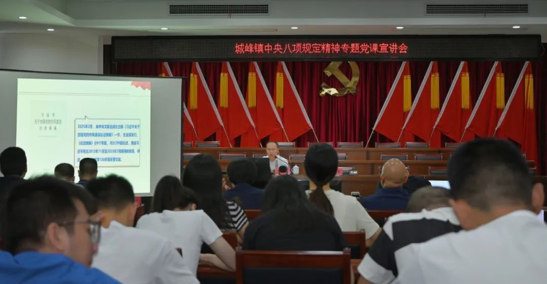 6月27日上午,一场以“锲而不舍落实中央八项规定精神 推进作风建设常态化长效化”为主题的专题党课在城峰镇开讲。中共永泰县委党校、县行政学校副校长,高级讲师陈志刚同志应邀作深入辅导,镇全体党员干部线上线下同步聆听,真正做到思想在淬炼中升华,纪律在共鸣中强化。 紧扣核心,深学细悟明方向