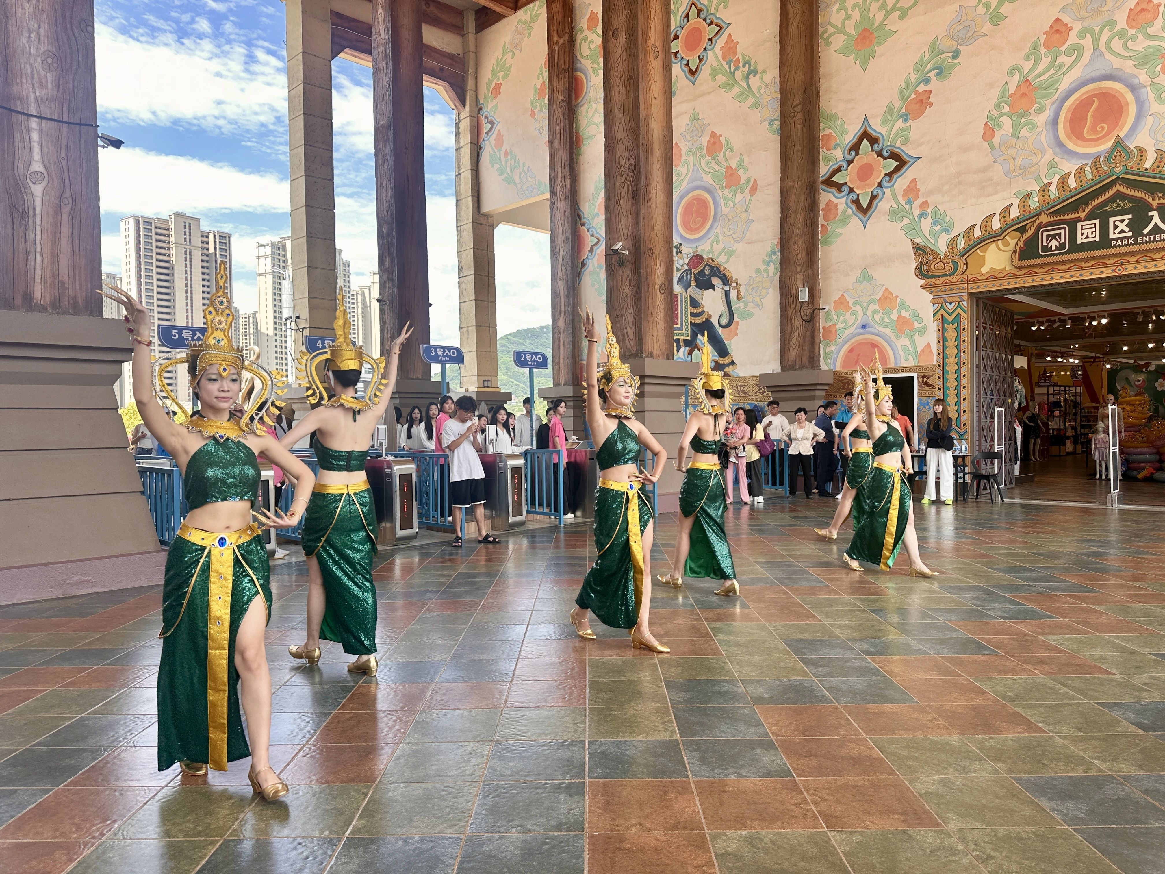 开园首日,现场充满异域风情的迎宾舞拉开了今年的欢乐序幕,热情洋溢的舞者们用灵动的舞姿欢迎每一位来客。据介绍,今年水上乐园的演艺活动相比去年有了质的飞跃。