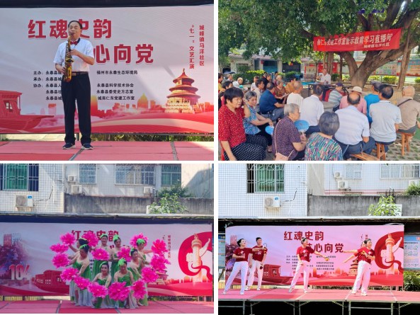 为庆祝建党104周年,弘扬红色文化,6月24日,县委党史方志室联合县科协等单位在马洋社区开展以“红魂史韵 艺心向党”和“绿色旋律,和谐共生”为主题的七一文艺汇演。 红魂史韵,艺心向党 活动将红色文化融入艺术,精心编排《我的祖国》《强军战歌》《没有共产党就没有新中国》等14个节目,通过歌舞、乐器演奏等多元形式传达对党和祖国的深情赞颂,礼赞时代,用文艺力量凝聚党群合力,激发社区居民爱国爱党热情。活动以开场舞《和谐中国》拉开序幕,用顺口溜等新颖的方式宣传中央八项规定精神。同时,以红色为基调,在榕树下开设警示教育学习直播间,由城南社区党建工作室负责人侯仁东作为主讲人,开展警示教育。讲座以生动鲜活的乡土方言增强党性教育的吸引力和感染力,让红色教育“活”起来。 绿色旋律,和谐共生 时值全国节能宣传周期间,活动还以“绿色旋律,和谐共生”为主题,通过体操舞蹈《最美垃分人》和快板表演等生动形式介绍垃圾分类常识,宣传环保知识,传播绿色发展理念,倡导居民树立节能观念和行为规范,形成全民勤俭节约、崇尚低碳用能的社会风尚。 |